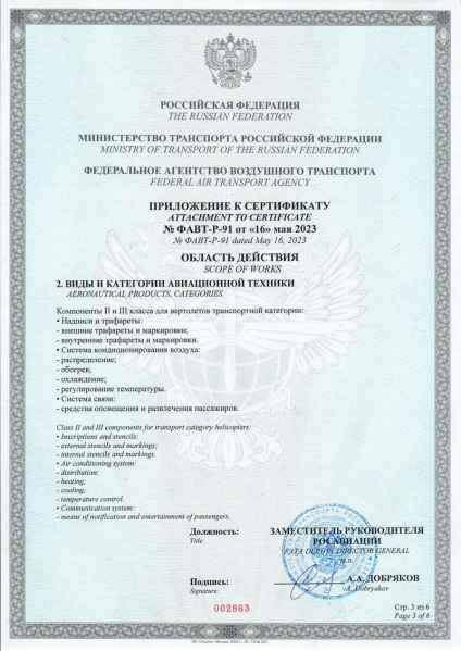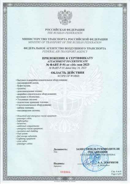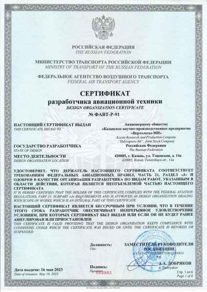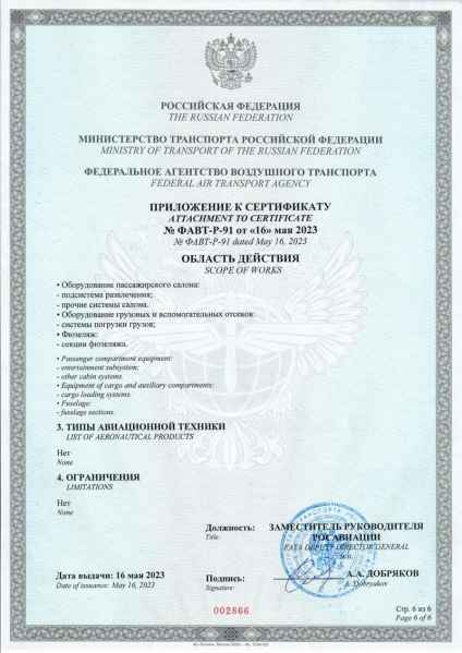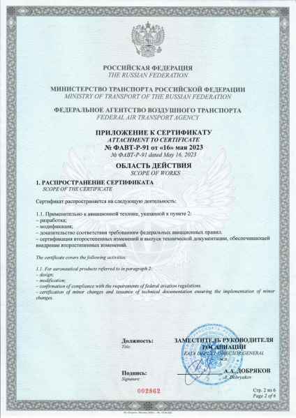 Сертификат разработчика авиационной техники ФАВТ-Р-91